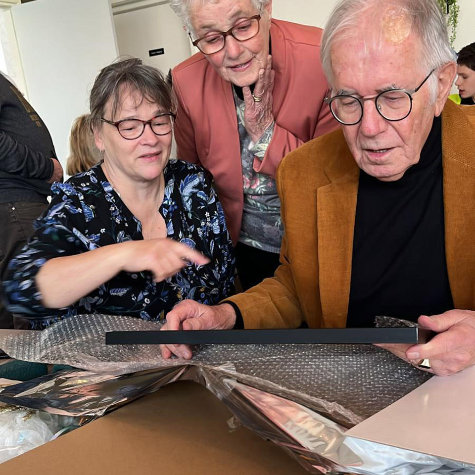 Hij kreeg een verzamelmap met persoonlijke woorden van zowel vrijwilligers als leerlingen. Hier was Andries heel blij mee. Ook gaat een aantal vrijwilligers met hem naar een concert van Slagerij van Kampen. Dat is zijn tweede favoriet.