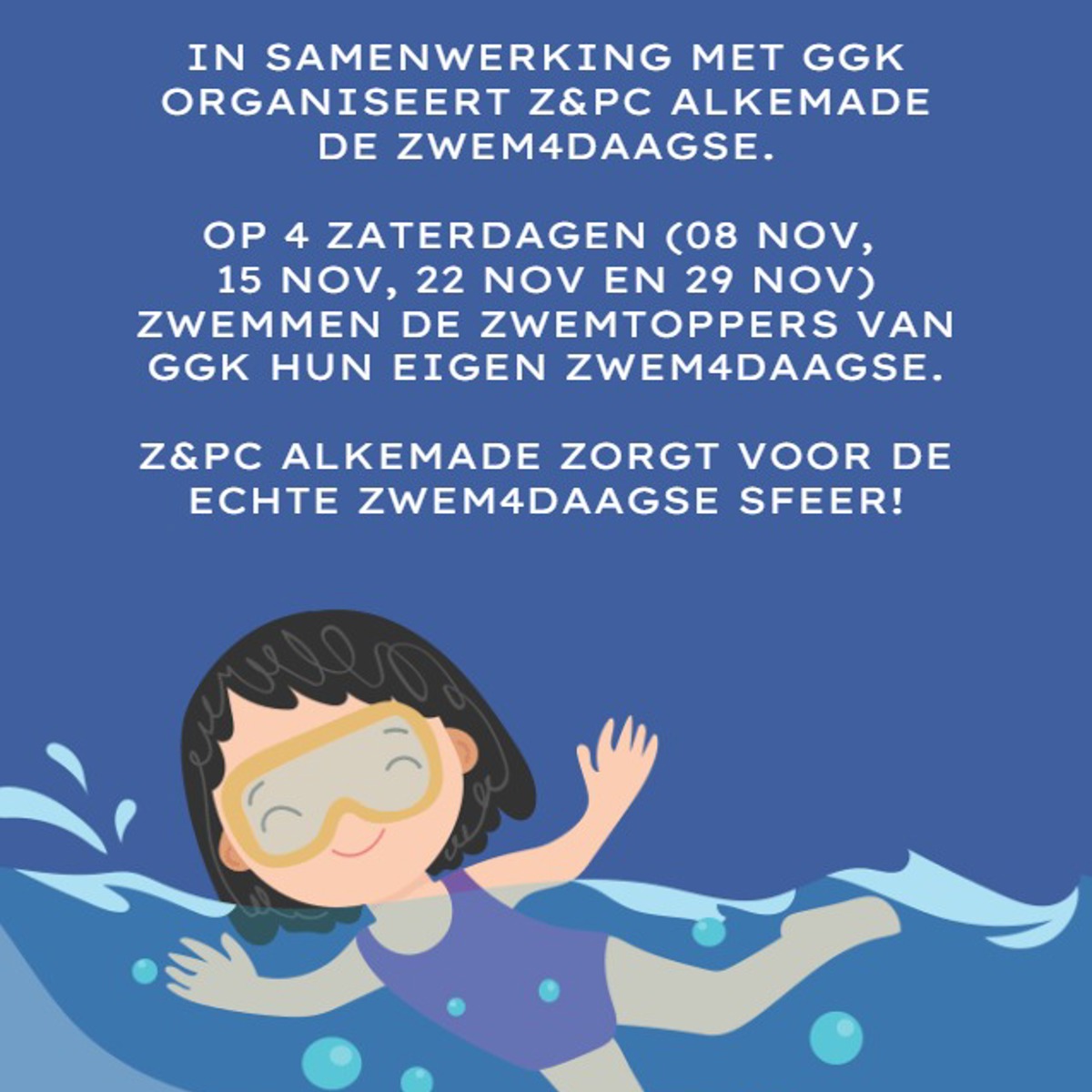 Op alle zaterdagen in november wordt er gezwommen voor de zwem4daagse.